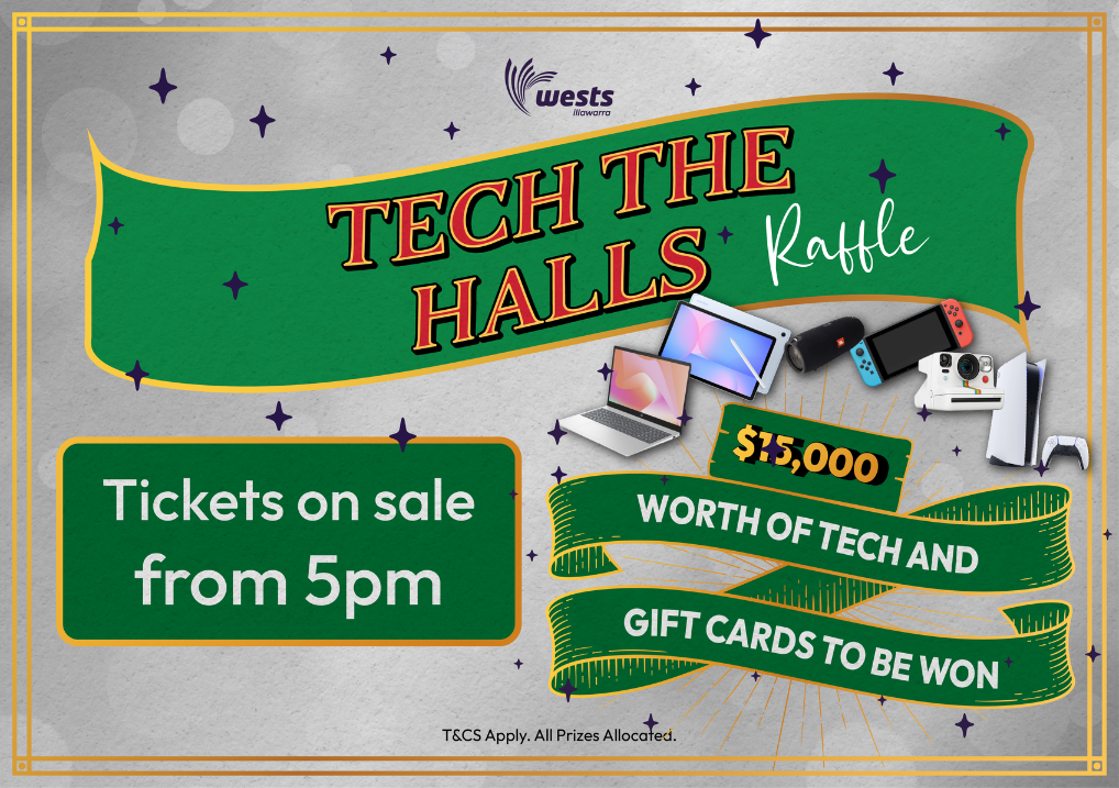 $15,000 worth of tech and gift cards to be won on Tuesday 9th December! Raffle tickets on sales from 5pm