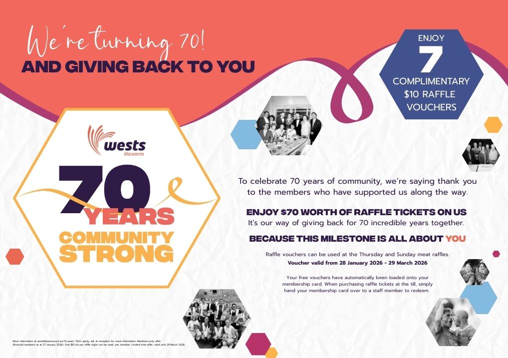 THANK YOU to our existing members – enjoy 7x free $10 vouchers. For Thursday & Sunday meat raffles. T&C’s apply.