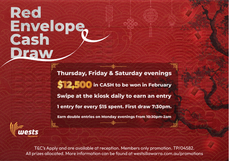 Thursday, Friday and Saturday evenings in Feb are for winning! $12,500 to be won by members with our Red Envelope Cash Draw. COMING SOON!
