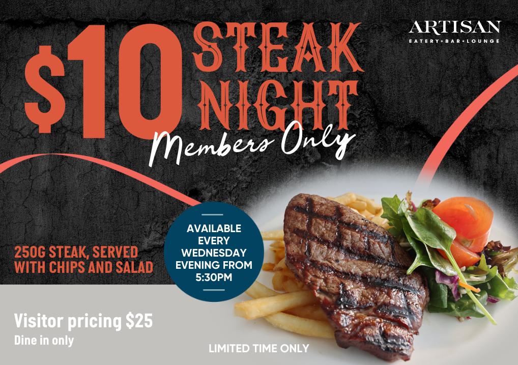 Look forward to Wednesdays with $10 Steak Night at Artisan – exclusive to members!