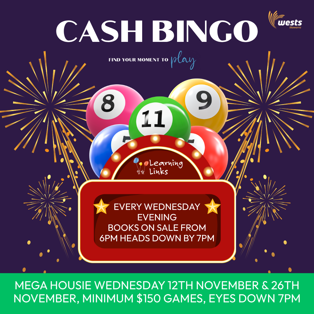 This November, visit Wests Illawarra for CASH BINGO! Every Wednesday evening, you can win big (plus special bonus monthly prize too!)
